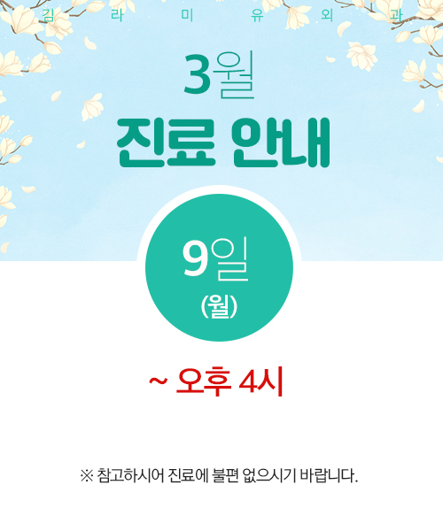 찾아오시는 길 진료안내 상담 및 예약 031.268.4545 진료시간 평 일 AM 9:00 ~ PM 6:00목요일 AM 9:00 ~ AM 11:00토요일 AM 9:00 ~ PM 1:00점심시간 PM 1:00 ~ PM 2:00※ 일요일, 공휴일 휴진 ※ 예약없이 내원하시면 대기시간이 길어질 수 있습니다.