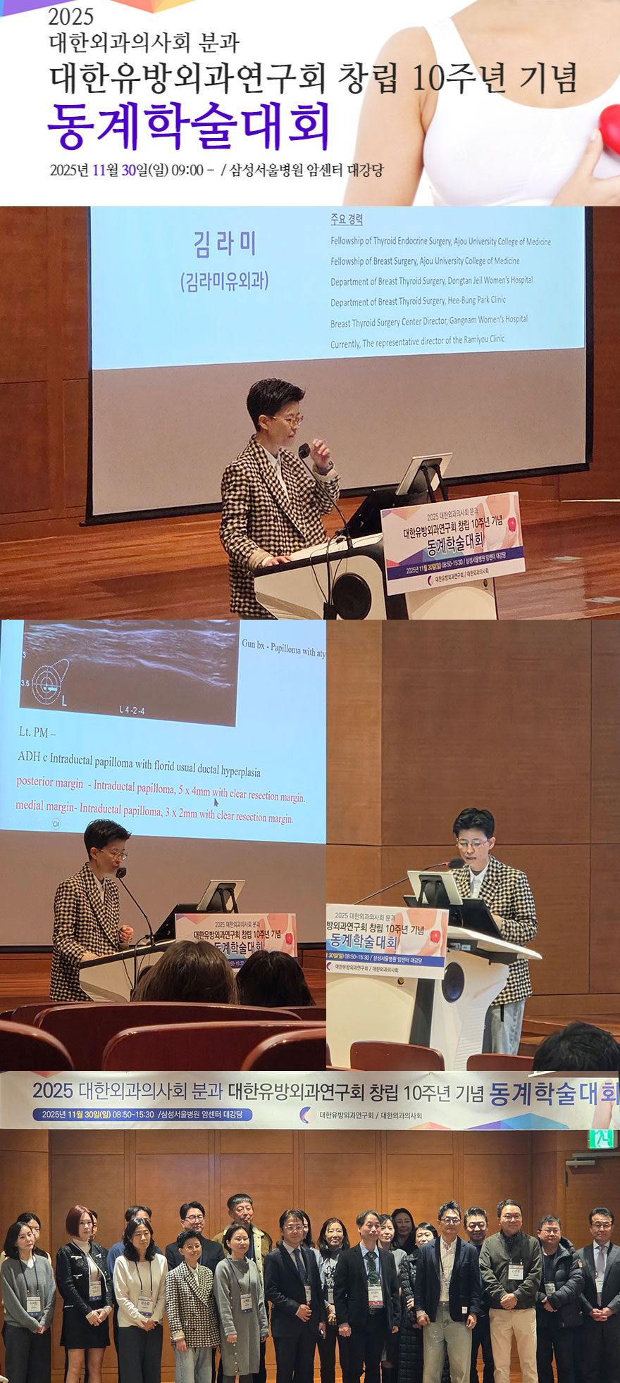 공지사항 김라미 원장 2025 대한유방외과연구회 동계학술대회 발표 작성자 : 김라미유외과 작성일 : 2025-12-01 조회수 : 186 2025 대한유방외과연구회 동계학술대회 김라미 원장 발표 목록